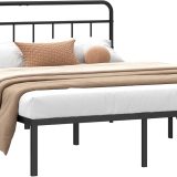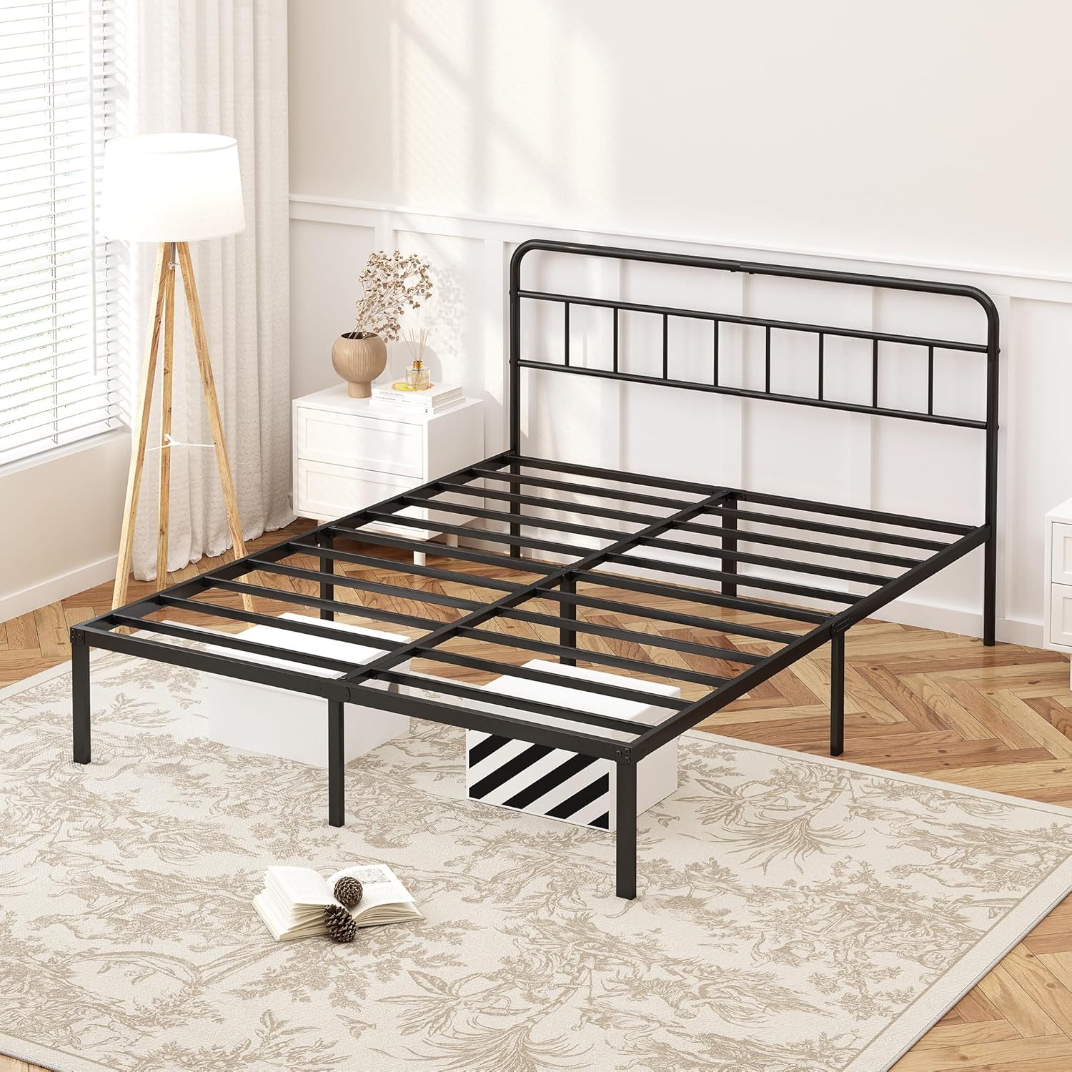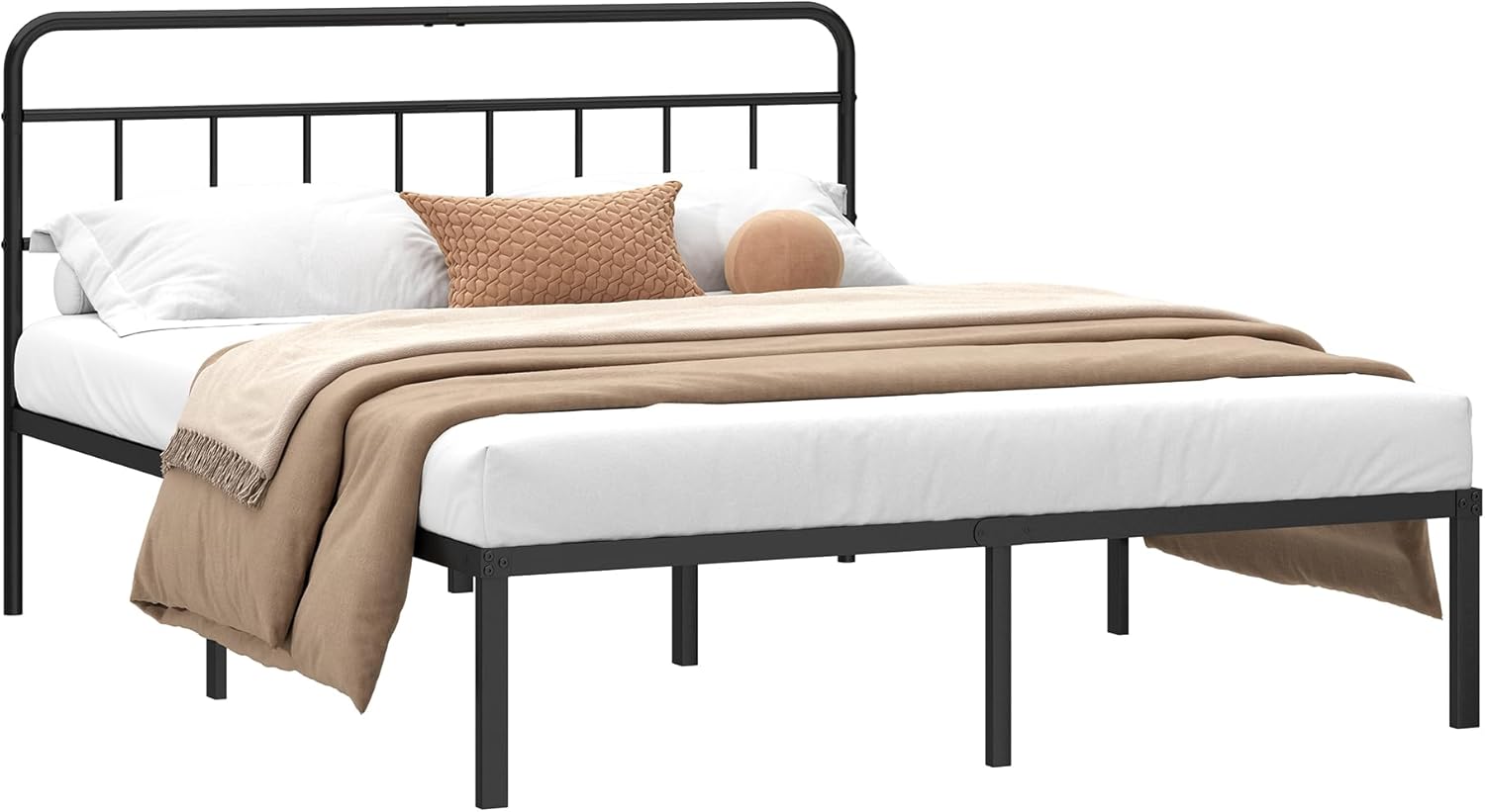 Introducing the 12-Inch Queen Size Bed Frame with Minimalist Headboard, a sleek and modern addition to your bedroom furniture collection. This metal platform base features a minimalist headboard design that adds a touch of sophistication to your space.